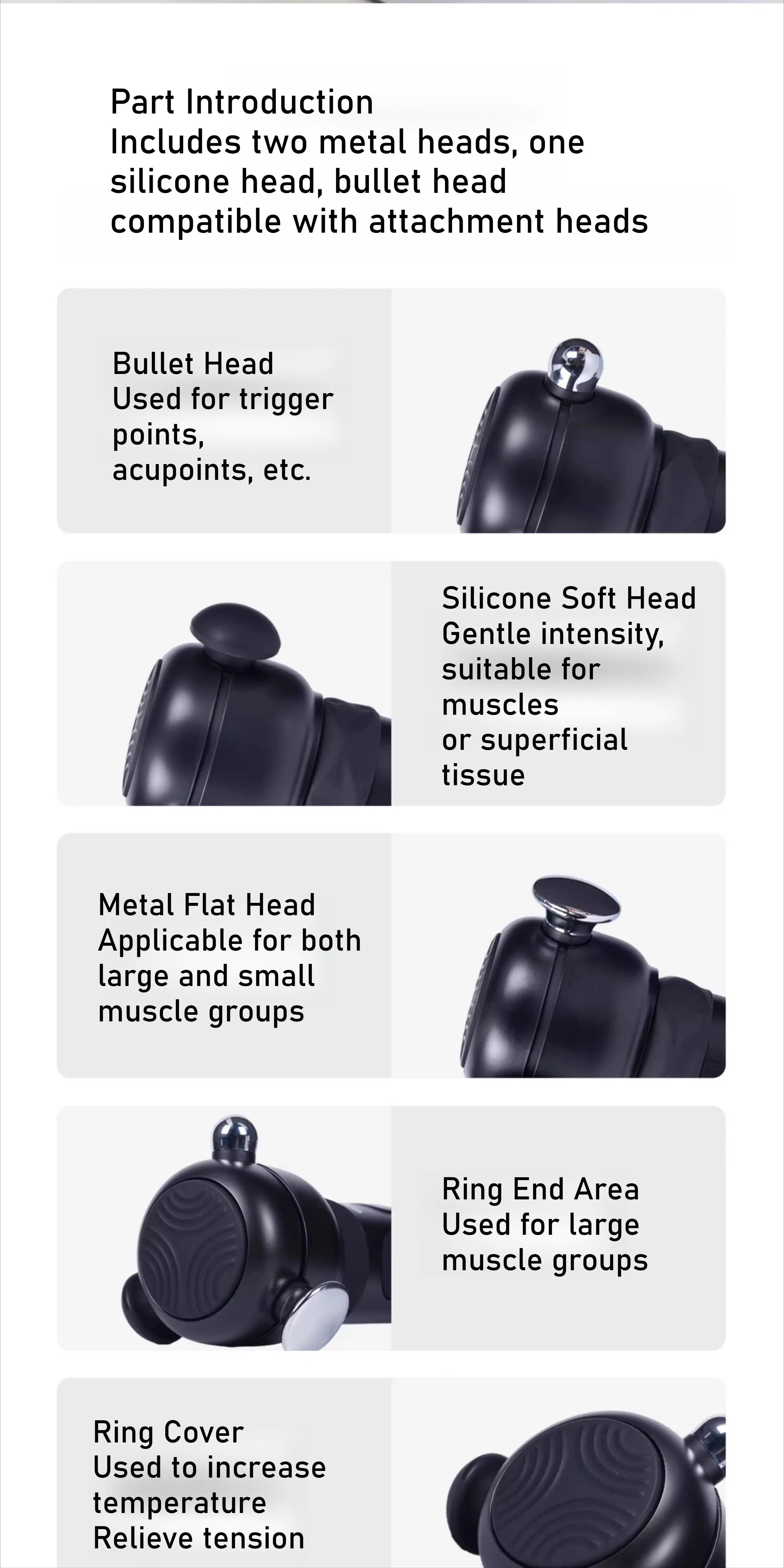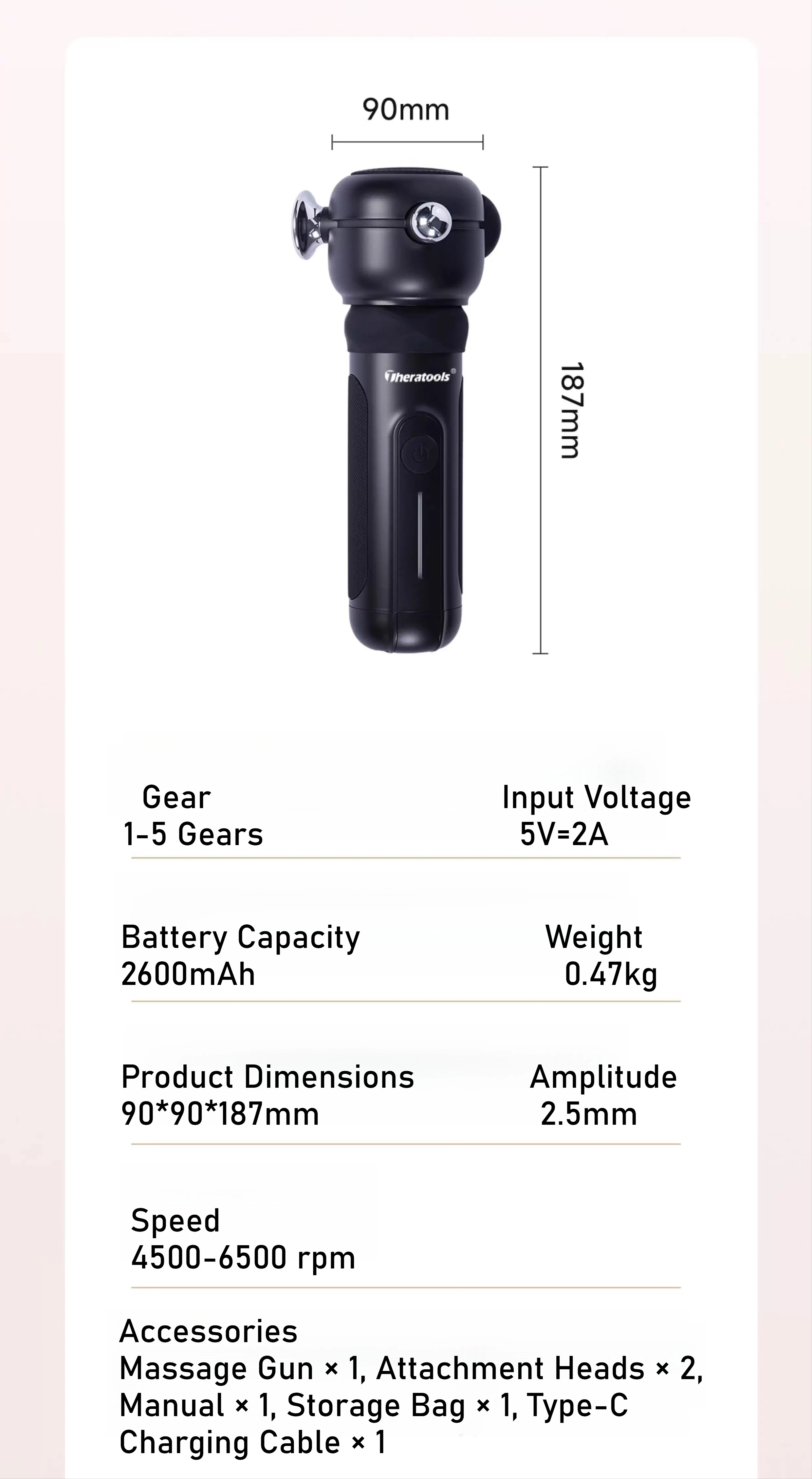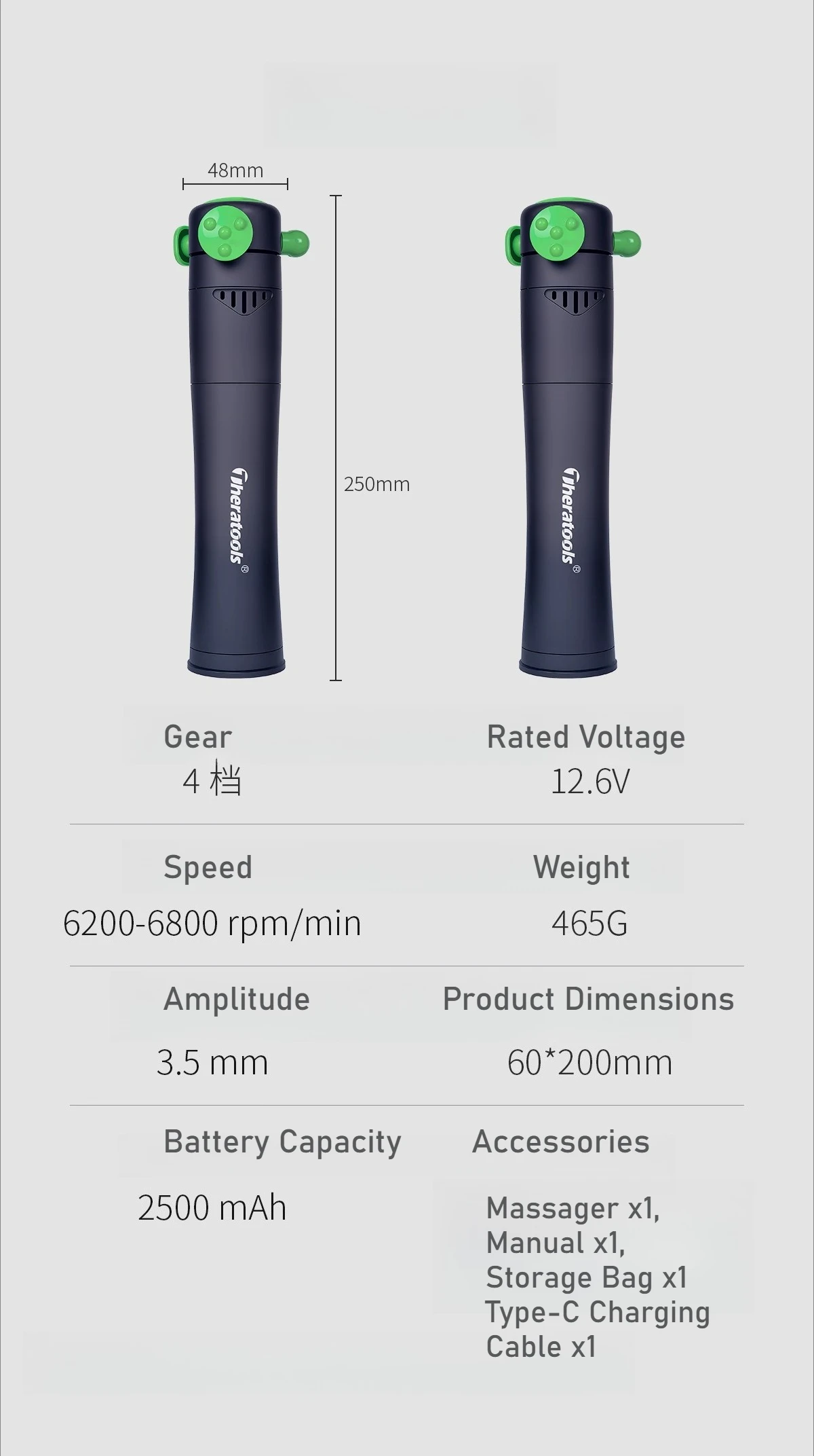 A:3D Massage Gun | Professional Muscle Relief✔ 5 Speeds: 4500-6500 RPM for customized intensity✔ 3D Vibration: Mimics hands-like kneading and pressing✔ Metal Body: Durable, quiet and stable✔ 2600mAh Battery: Up to 150 mins runtime✔ 4 Attachments: For different muscle groupsWhat’s in the box:Massage Gun × 1Attachment Heads × 2Type-C Cable × 1Storage Bag × 1Manual × 1Ideal for: Post-workout / Office fatigue / Daily relaxation 💆♂️⚡ B:Deep Tissue Vibration Massage TherapyIncludes:Metal bullet tip (for knots and lower back)Metal flat and triangular tips (for tendons and muscles)Silicone round head (for large muscle groups)Cone head (for acupoints and soles)U-shaped head (for neck and spine)Comes with a buffer cover for full-body use.Professional PerformanceFeatures a high-speed motor, aluminum body, and 2500mAh battery. Ideal for treating pain caused by injury, overuse, poor posture, or repetitive motion. Suitable for athletes, office workers, and anyone in need of muscle recovery.3 Speed LevelsThree preset speed modes with LED indicators allow customized intensity for sensitive areas or deep tissueC:4-speed adjustable intensity for customized relaxation6800 rpm max speed, deep tissue reliefUltra-lightweight (465g), easy to use anywhere3.5mm amplitude, targets muscle tension precisely2500mAh battery, long-lasting performanceIncludes massager, charging cable, storage bag, and manual D:Powerful Motor Efficient and stable performance for precise, strong relief.Name: Deep Tissue Massage PenDimensions: 140*49*14mmSpeed Levels: 10Weight: 135gBattery Life: 3-4hBattery Capacity: 400mAh